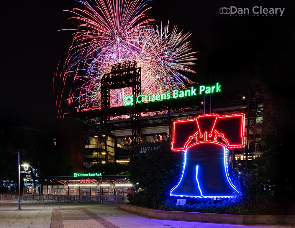 The newly refurbished Veterans Stadium Liberty Bell now features 321 new color-changing LED light bulbs and outlined with a new color-changing neon stripe controlled in 290 5” long segments. The Bell can now be found outside the 3rd base entrance of Citizens Bank Park at Pattison Avenue and 11th Street, next to Mike Schmidt’s statue.